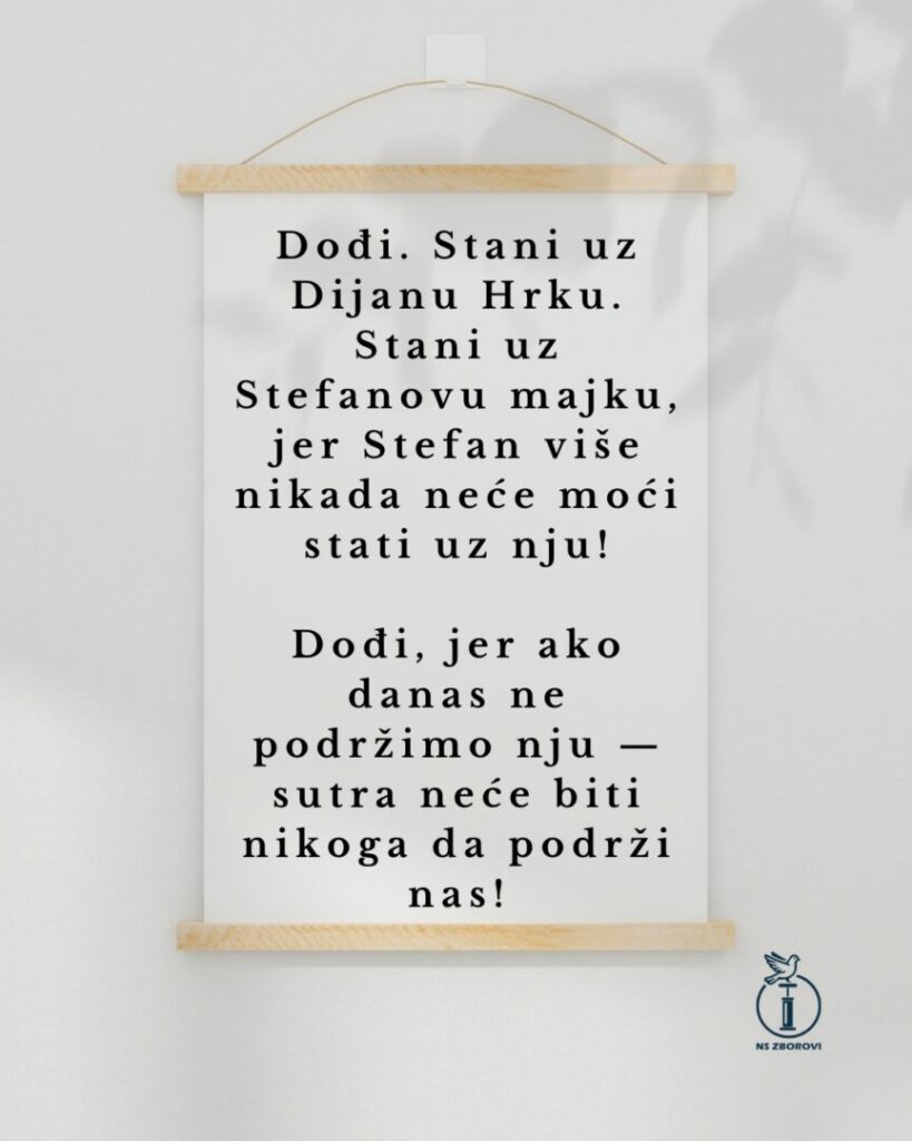 Dođi. Stani uz Dijanu Hrku. Stani uz Stefanovu majku, jer Stefan više nikada neće moći stati uz nju!