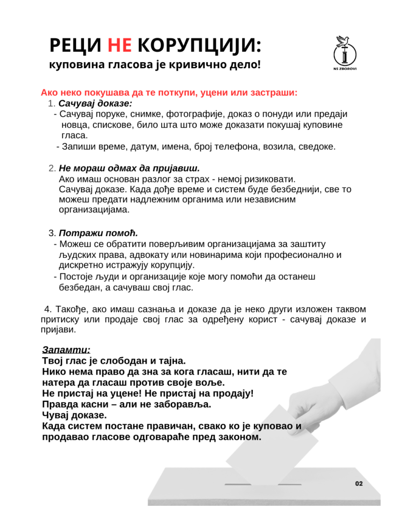 Tvoj glas je slobodan i tajan. Niko nema pravo da te ucenjuje, pritiska ili traži dokaz kako si glasao.